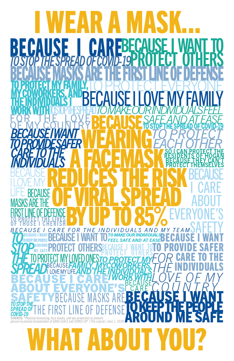 To better protect the individuals served by the Department of Developmental Services, we wanted to produce a poster campaign promoting proper use of masks and personal protective equipment.